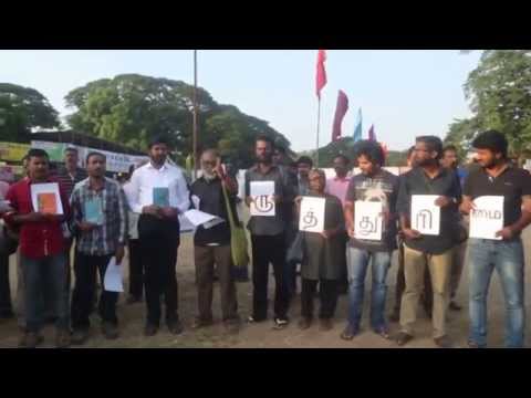 ஜனவரி 13 அன்று மாலை 4 மணி அளவில் சென்னைப் புத்தககண்காட்சியில் பெருமாள் முருகனுக்கு ஆதரவாக கருத்துரிமை பாதுகாப்புக் கூட்டமைப்பு சார்பாக அமைதியான போராட்டம் ஒன்றை நடத்தினோம்.